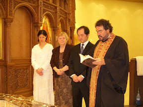 Going through the digital camera, I found a few pictures from when Hyo and Samantha joined the Greek Orthodox Church. It's a long story, but converting was the only way that they would be allow to be JT's God parents. A $300 dollar donation, some holy water and thirty minutes they are now officially kosher. Well not kosher, but you get the drift.