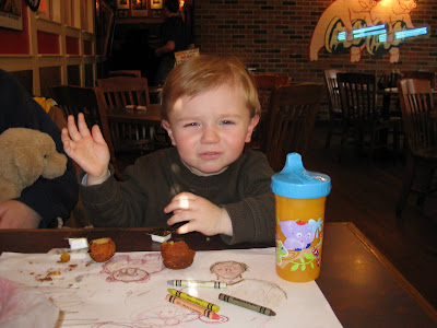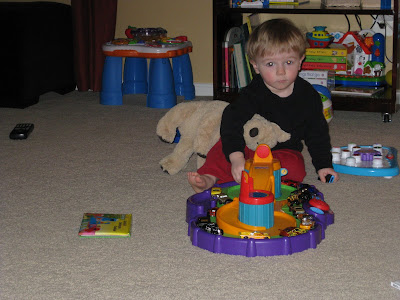 Everything is stuck these days. The ball is stuck. I no longer want to be in the highchair so I am stuck. I can't reach the keys on the table, hence they are stuck. Here is