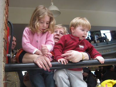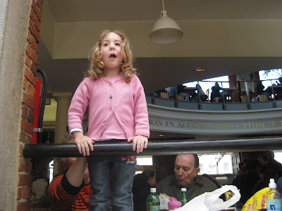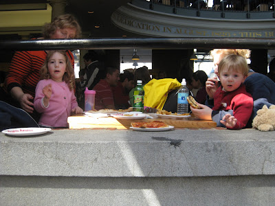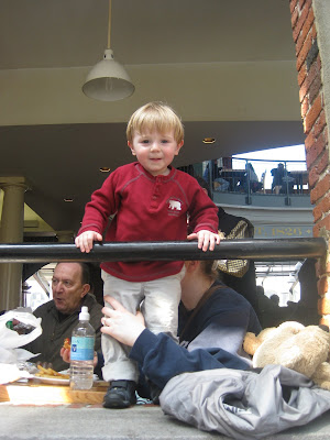 He is a collection of pictures from a trip to the New England Aquarium followed by lunch at Faneuil Hall. Jt wasn't a really big fan of the aquarium as it was much too dark and crowded for his tastes but he loved the Curious George Discovery Center by the penguin tank.