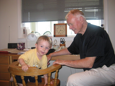 We were stuck inside on our latest visit to Winchester as according to JT "Too hot, no go outside", however a good time was still had by all. Here are a few pictures of JT and Grandpa "playing" at Grandma's desk. Playing, as in taking all the scotch tape off the roll and sharpening pencils down to nubs in the electric sharpener.