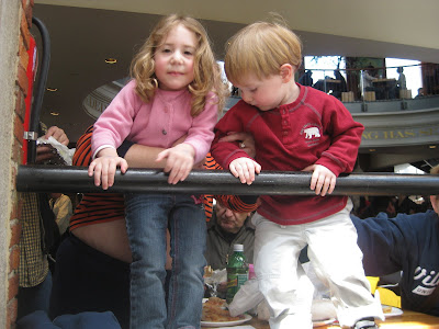 Here are some pictures of JT with Allison, Jason and Savina's Daughter. Allison is a bit older than JT so he likes to follow her around and do whatever she does. She is very funny and reminds me of Catie a little bit. These pictures were actually taken at Le Matin de Paris where we stopped for desert. If you are looking for a good restaurant in the Annandale I would recommend either Han Sung Oak or Paris.